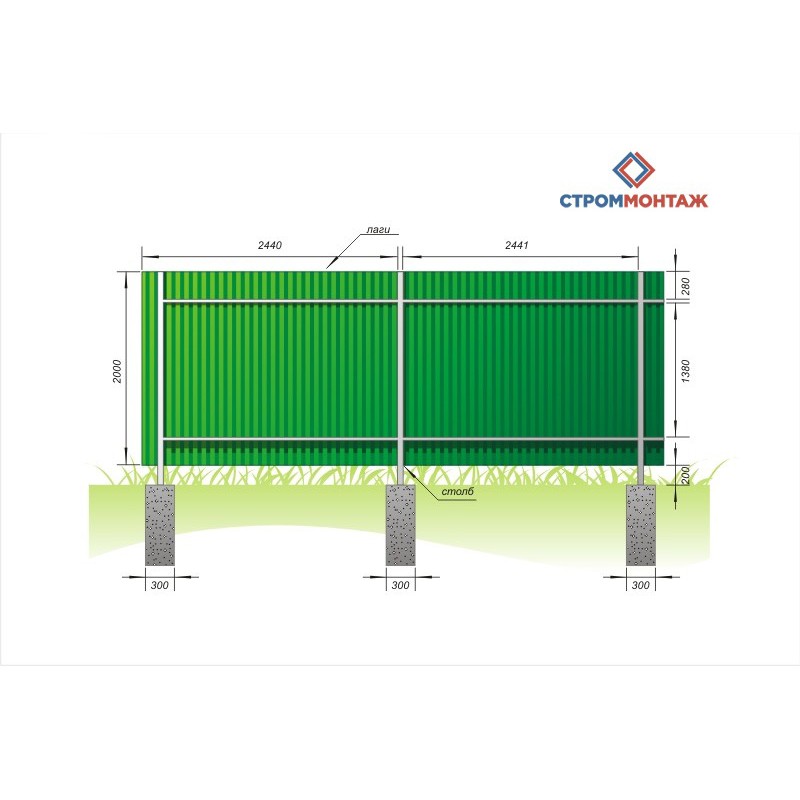 | Крепление | Бетонируемые в землю металлические стойки 400 (мм) |