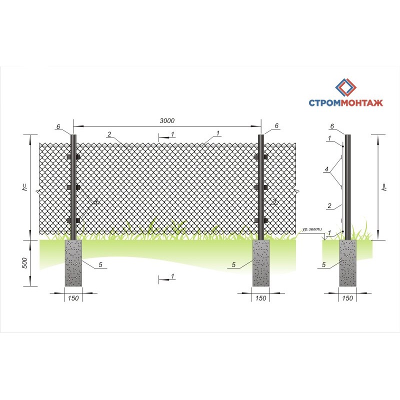 | Крепление | Бетонируемые в землю металлические стойки 400 (мм) |